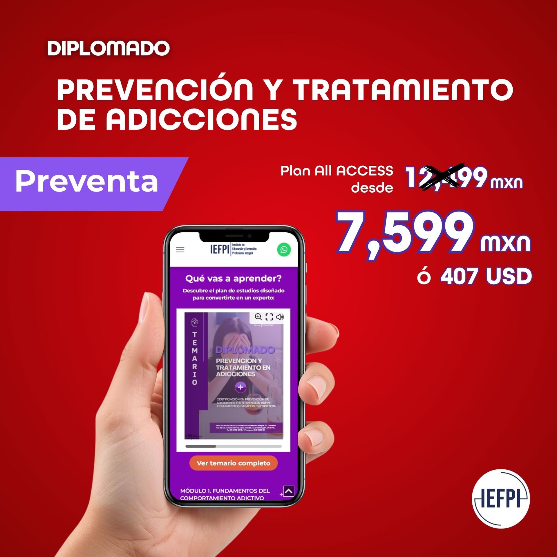 Recomiendo ampliamente este diplomado en Evaluación e Intervención en el Consumo de Sustancias Psicoactivas. La formación fue de excelente calidad, con explicaciones claras, ejemplos pertinentes y un lenguaje accesible para todo público. Me siento profundamente agradecida por haber formado parte de este grupo tan enriquecedor.