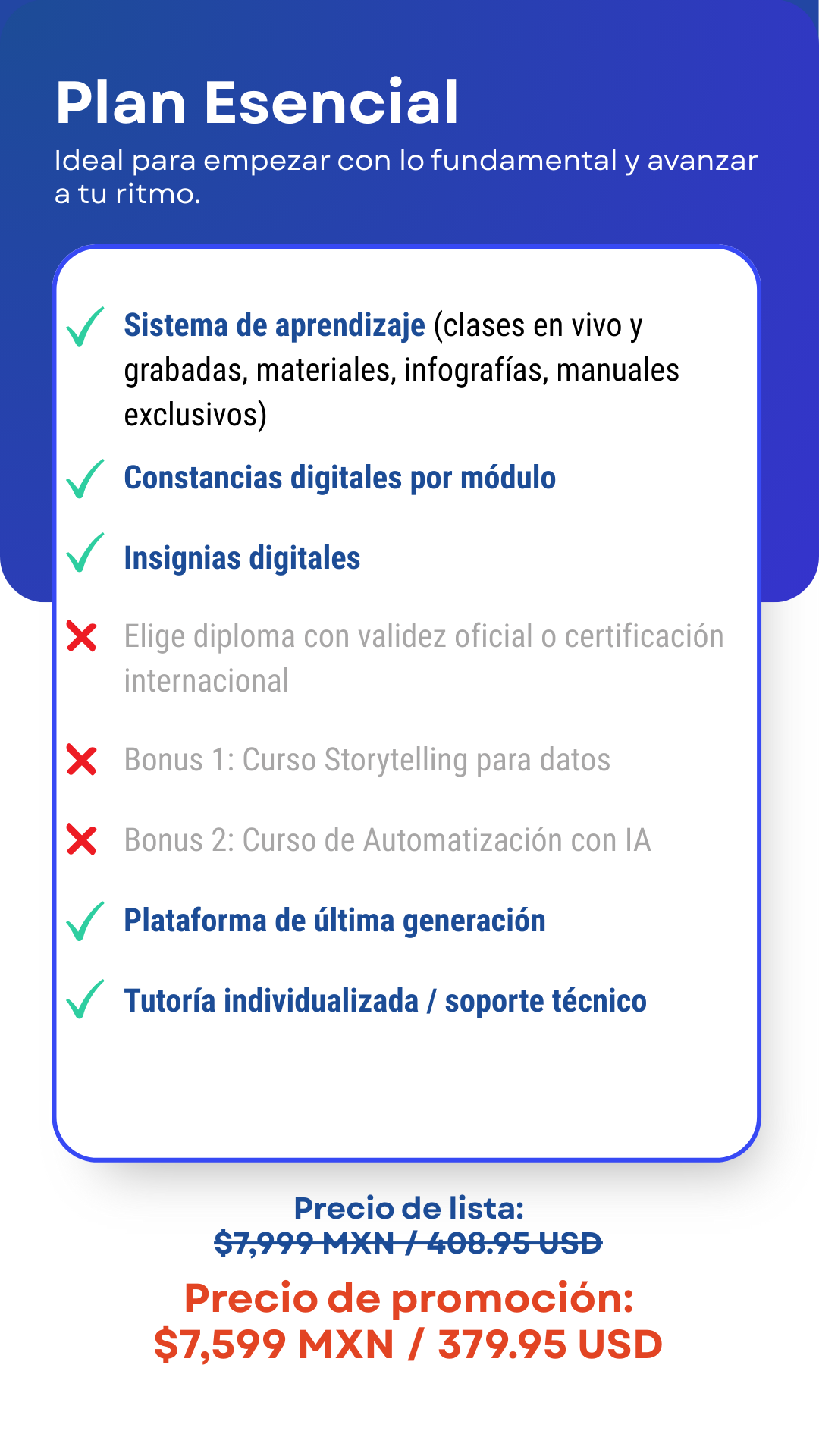 - Presentarás dashboards narrativos que influyan en decisiones ejecutivas.