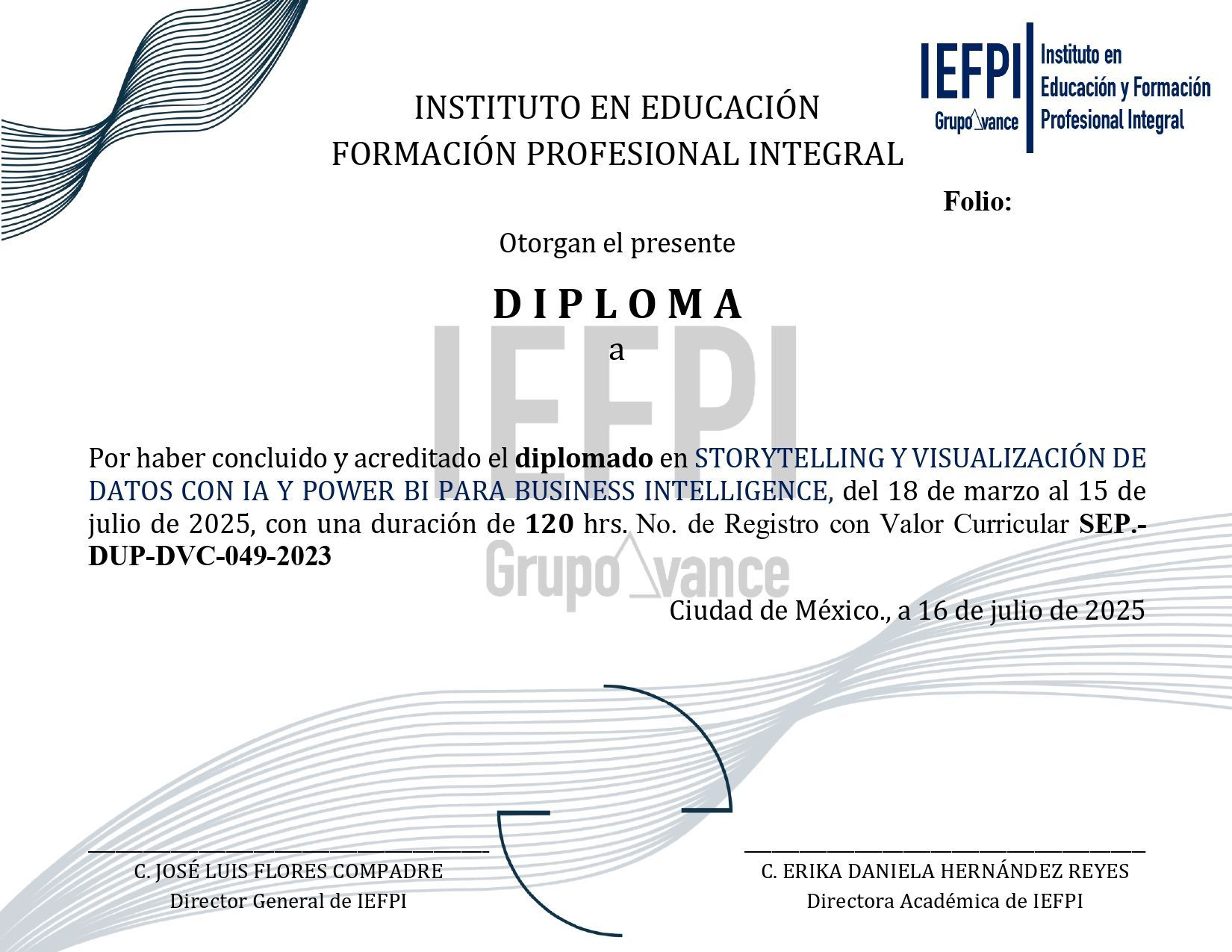 Sabemos que las soluciones genéricas de análisis de datos no son suficientes para destacar. El IEFPI cuenta con la experiencia en la formación de profesionales que piensan y comunican estratégicamente. Hemos desarrollado este programa para combinar de forma accesible los fundamentos de Business Intelligence, la IA aplicada y las técnicas de persuasión, dándote un plan claro y práctico para que te conviertas en un perfil indispensable en cualquier organización.