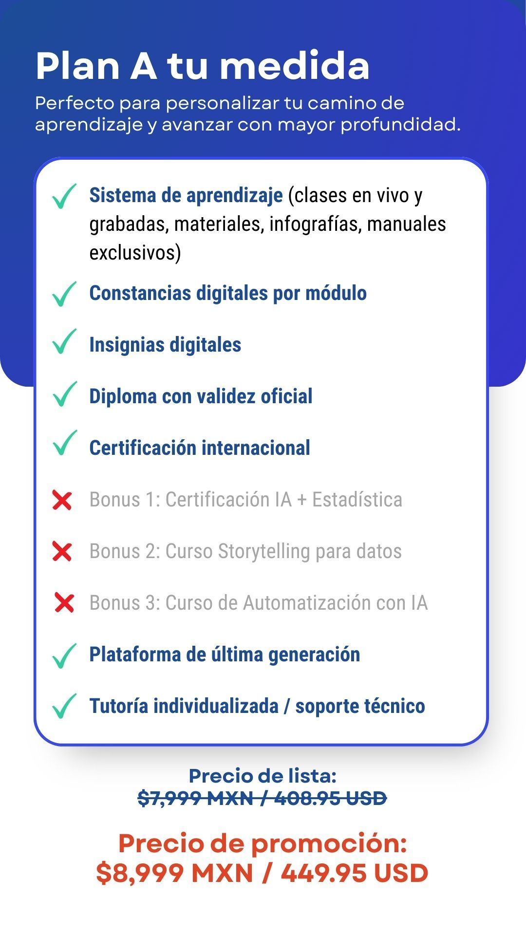 Cada día, más profesionales se capacitan en IA y BI, posicionándose para las mejores oportunidades. Quedarte atrás significa que tu CV pasará desapercibido y tu impacto en las decisiones de negocio será limitado.