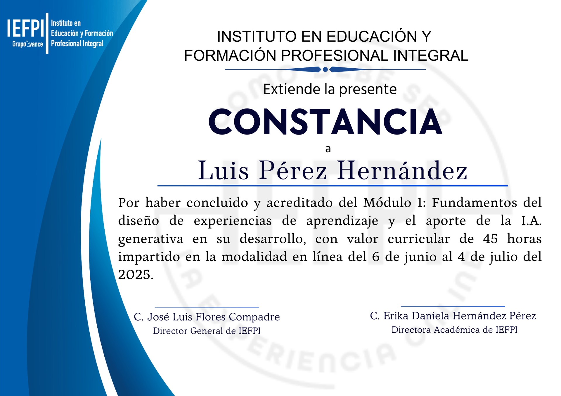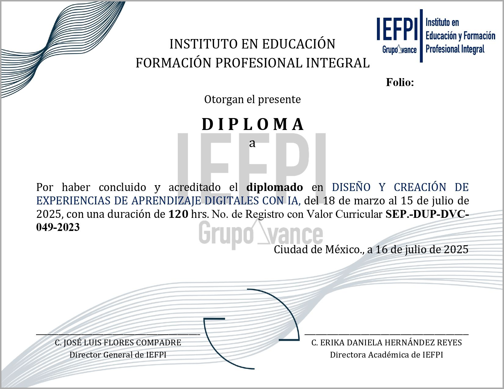 En el IEFPI hemos diseñado un camino estructurado para educadores: más allá de enseñarte a usar herramientas, te ofrecemos el Modelo EXD, un método probado que te guía paso a paso en la creación de experiencias de aprendizaje digitales. Con este diplomado, dejarás de depender de pruebas aisladas y aprenderás a diseñar con propósito, convirtiéndote en un verdadero arquitecto del aprendizaje digital.